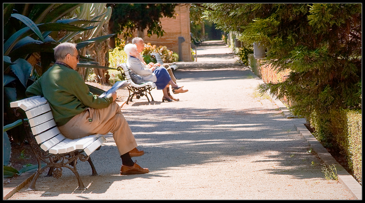 Even though their is no abundance of solar colors (yellow, red, orange, etc.), the picture makes you feel the warmth of the atmosphere… it’s so quite and peaceful… because of the presence of old people resting peaceful on the benches in the sun more than looking for the shade as in a hot summer day, I would call it SPRING SERENITY…