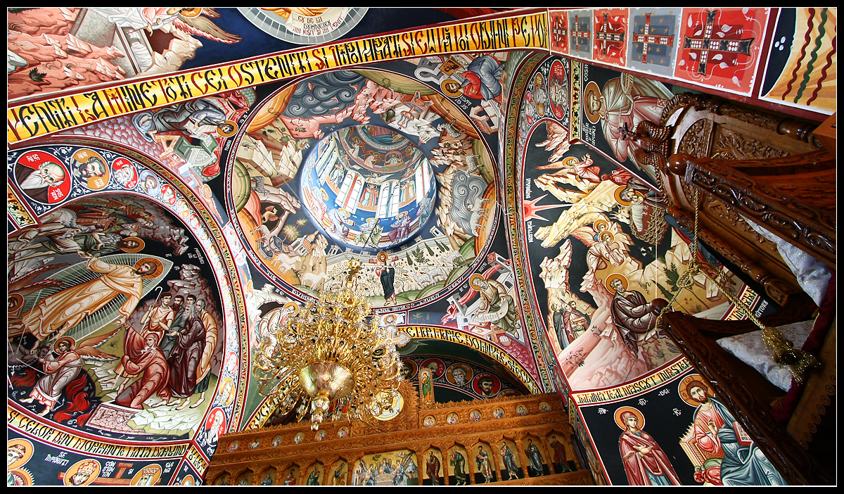 I find the paintings inside the smaller church very interesting. I also think the entrance warning deserves a whole discussion. What it says is “let’s at least act decent” . I think this is a very pessimistic view of the people sent by the Church. Seems like the subjects are uneducated, badly intended and generally a bunch of pigs, and the most they could do is pretend to be civilized 😦 That does not sound very orthodox to me …