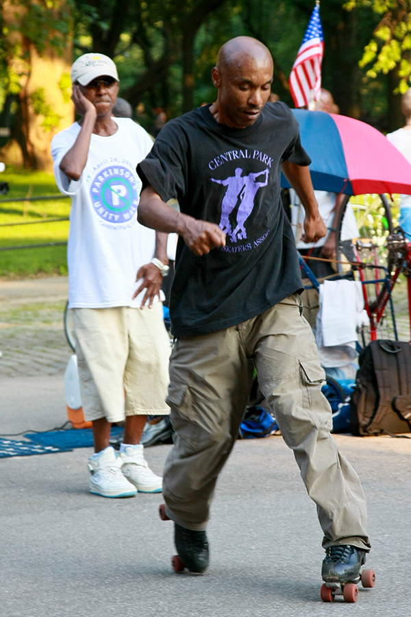 Rollerskating to the beats of music in Central Park, NYC.