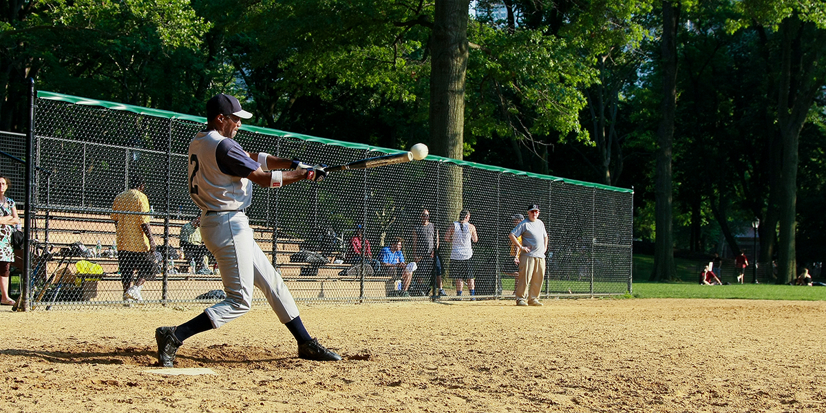 Good Hit Batter hits the ball in a softball game in Central Park. By the looks of it, it seems that the ball will go far. Like Loading...